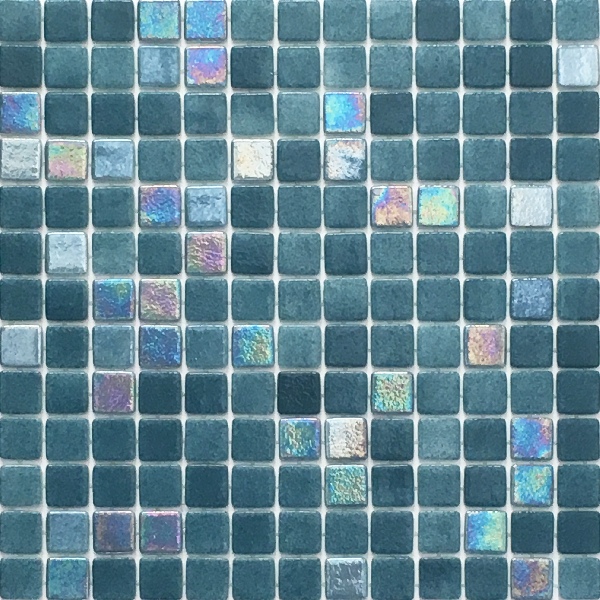 Burkolási munka során megmaradt, vadonat új, de a PVC pontoknál szemekre vágott, türkizzöld, 30 %-ban irizáló gyöngyházfényű spanyol üvegmozaik keverék