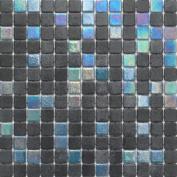 Mozaik munka során megmaradt, vadonat új, de darabokra szedett szürke mákos és irizáló türkizzöld üvegmozaik keverék.