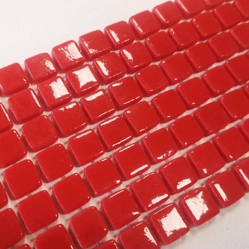 Kirakási munka során megmaradt Pipacspiros, anyagában színezett üvegmozaik